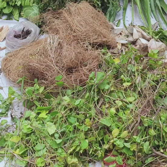 Amla, Bhringraj, Brahmi, Hibiscus, Curry Leaves, Neem, Coconut Oil, Sesame Oil, Castor Oil, Fenugreek Seeds, Vitamin E, Kalonji (Black Seed), Aloe Vera Extract, Tulsi, Shikakai, Reetha, Onion Extract, Jatamansi, Ashwagandha, Sandalwood Oil, Jojoba Oil, Argan Oil, Mustard Oil, Licorice (Mulethi), Clove Oil, Camphor, Rosemary Oil, Tea Tree Oil, Green Tea Extract and more..