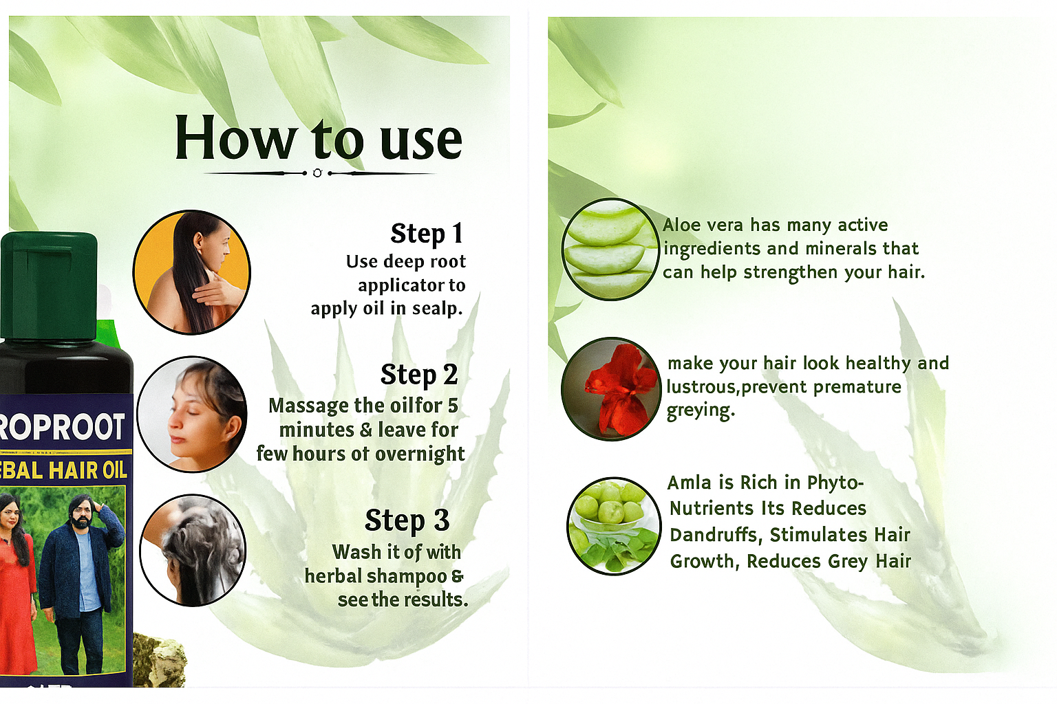 Droproot Herbal Hair Oil – 100% Natural Nourishment for Stronger, Healthier Hair Unlock the secret to healthy, radiant hair with Droproot Herbal Hair Oil – a powerful blend of time-tested herbs and natural oils that nurture your scalp and restore the vitality of every strand. Crafted with care and backed by ancient Ayurvedic wisdom, Droproot Herbal Hair Oil is your all-in-one solution for common hair concerns like hair fall, dandruff, dryness, premature greying, and split ends. This herbal formula deeply penetrates your scalp, stimulating hair follicles, improving blood circulation, and delivering essential nutrients directly to the roots. Whether you’re battling daily stress, exposure to pollution, or just want to revive dull, lifeless hair, Droproot is designed to bring back strength, shine, and softness – naturally.
